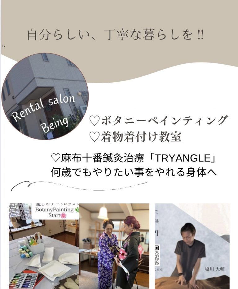 今日は、レンタルサロンBeingのご紹介をしたいと思います。